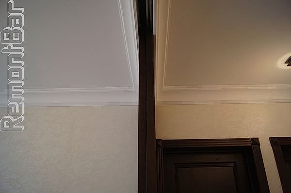 ...построили Pin Up расширив проем. Затем все поверхности (и стены и потолок) оштукатурили гипсовой штукатуркой под маяк. Идеально ровные поверхности очень важны для дальнейшей реализации проекта - задуманы широкие потолочные карнизы, которые на не очень ровные углы и поверхности установить просто невозможно.