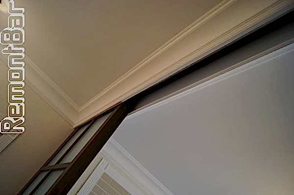 Затем обшиваем направляющую рейку раздвижного механизма Pin Up (без каркаса) - прячем ролики и создаем основу для монтажа потолочных плинтусов.