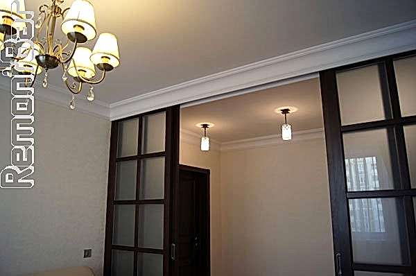Pin Up потолочные плинтуса по периметру каждой части помещения - отдельно прихожая, отдельно зал.
