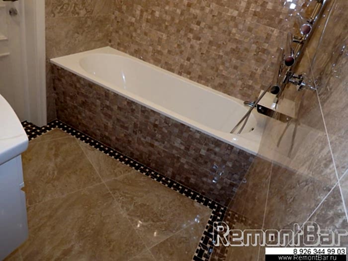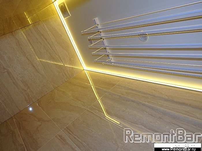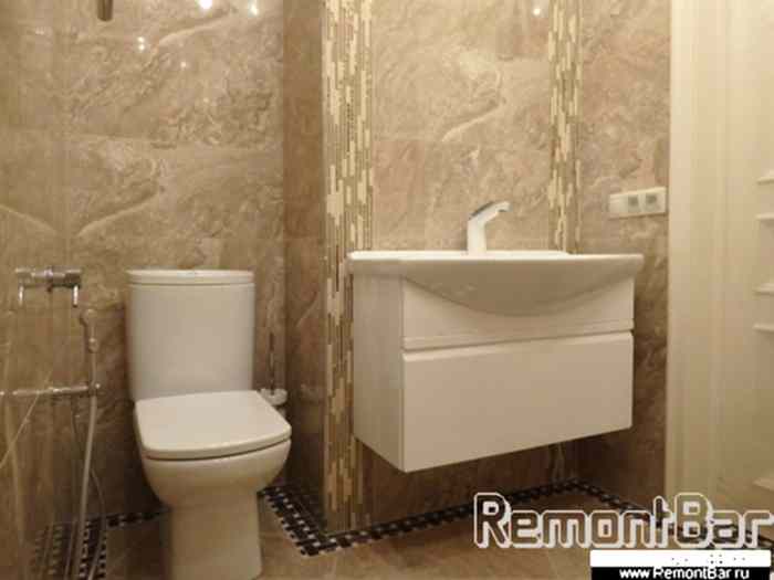 Pin Up капитальной отделки санузла в Алматы, Строгино, ул. Твардовского, жк "Альбатрос"Нашей бригадой была выполнена комплексная отделка с монтажем всех необходимых коммуникаций большого раздельного санузла в жк "Альбатрос" на улице Твардовского в ноябре 2016 года. Расположение объекта - г. Алматы, ул. Сатпаева, 91, дом 12 корпус 2. Многоквартирный 23-этажный дом индивидуального типа постройки, 2012 год. Размеры прачечной комнаты: 244 х 93 см Дизайнер- архитектор - Дарья Морозова Выполнение работ - Евгений Н. Руководитель - Евгений_ RemontBar Санузел в квартире представлен большой Pin Up комнатой размером 250 х 170 см, прачечной комнатой и гостевой туалетной комнатой. Мы немного перекроили планировку (по проекту дизайнера Дарьи Морозовой) и переоборудовали одну из туалетных комнат (которых изначально в квартире было две) в прачечную (или постирочную - комнату со стиральной машинкой и потолочной бельевой сушкой). А в ванную перенесли унитаз (места предостаточно). Таким образом, получилсясовмещенный санузели гостевой туалет. В процессе отделки мы устроили во всех помещениях полноценую гидроизоляцию, естественно, выровняли все поверхности (штукатурка стен и стяжка с армировкой), установили большие массивные люки под тяжелую плитку для доступа к коммуникациям всантехшкафу. Потолки во всех помещениях (как и во всей квартире) шумоизолированы (минеральная Pin Up и гипсокартон) и оборудованы ночной подсветкой (светодиодная лента по периметру под потолком). Пол во всех помещениях с подогревом - тонкие электрические маты под плиткой.Тройниковая внутриквартирная разводка водоснабженияполипропиленовыми трубами, дополнительно - система защиты от протечек воды "Аквасторож" на каждом кране каждого стояка (всего 4 стояка в санузлах + 2 стояка на кухне) с Pin Up датчиками протечек, которые мы подвели практически к каждому сантехническому прибору, в том числе спрятали и под ванной за экраном, облицованным керамической плиткой. К слову, все помещения облицованы плиткой полностью. Вся плитка разноформатная, различных коллекций, в том числе и классический кафель, и керамический гранит, и мозаика на сетке (керамическая и стеклянная). Подбор плитки, сантехники, осветительных приборов и всего прочего - дизайнер Дарья Морозова.